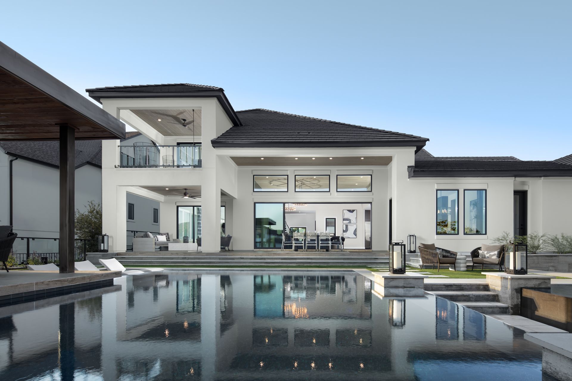 Recognized for its beautiful integration of fire and lighted water features, this pool overlooks the Texas Hill Country and demonstrates how a pool design can enhance a custom home when thoughtfully integrated.